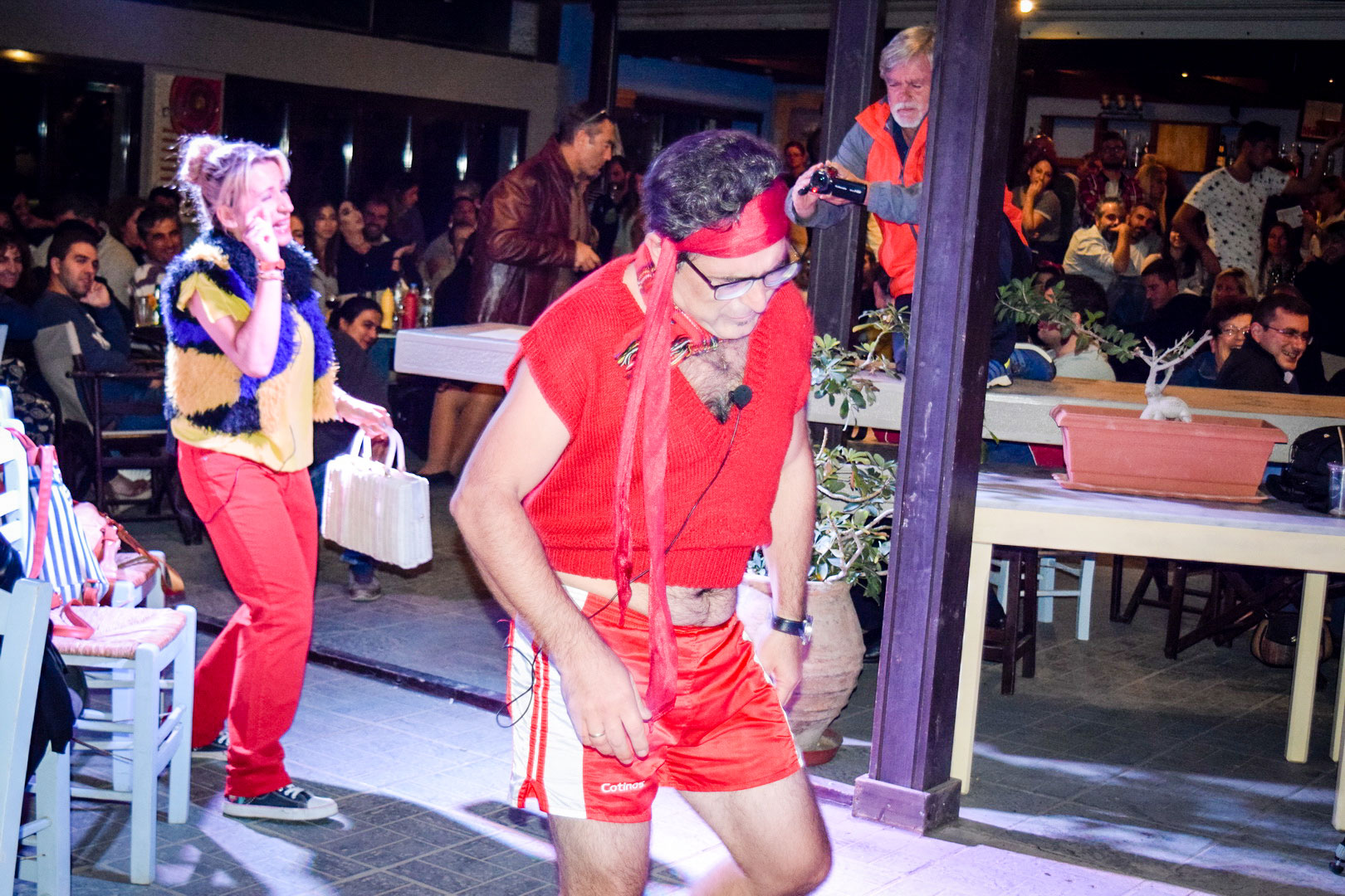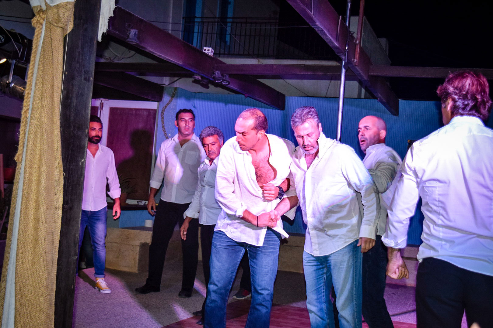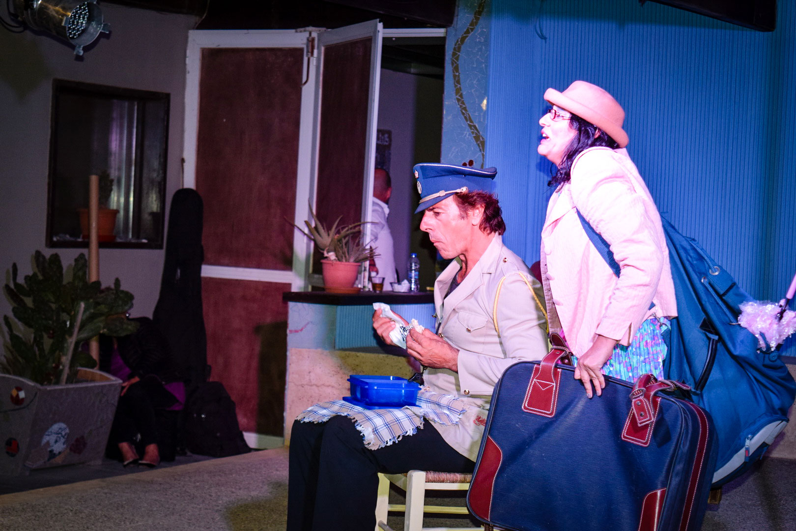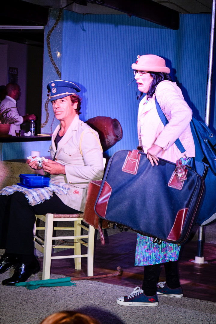 Οι ηθοποιοί της ΘΟΚ παρουσίασαν «Θεατρικά Σφινάκια» – σύντομες σκηνές των Carl Valentin, Γιώργου Σκούρτη, Γιώργου Μανιώτη – καθώς έπιναν το ποτό τους οι θαμώνες και οι επισκέπτες του νησιού.