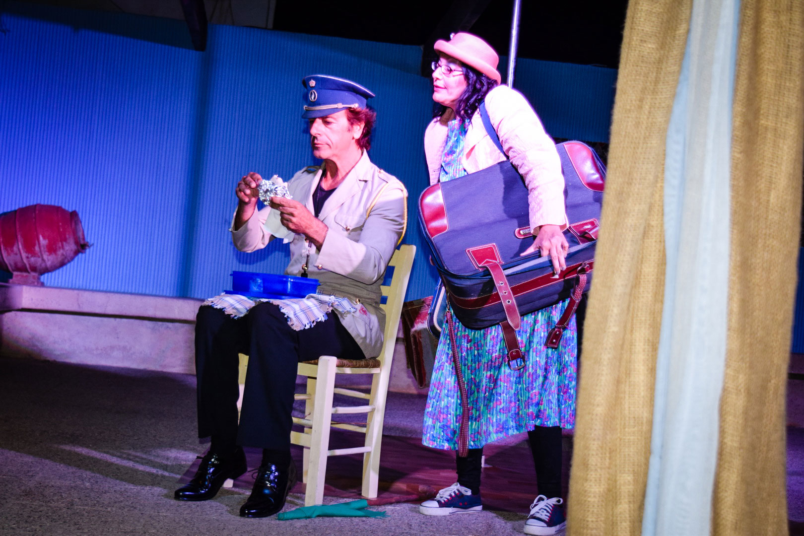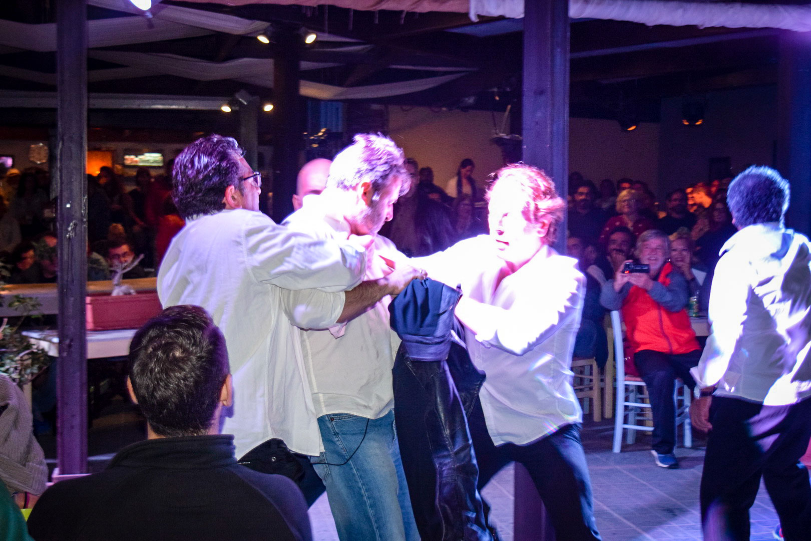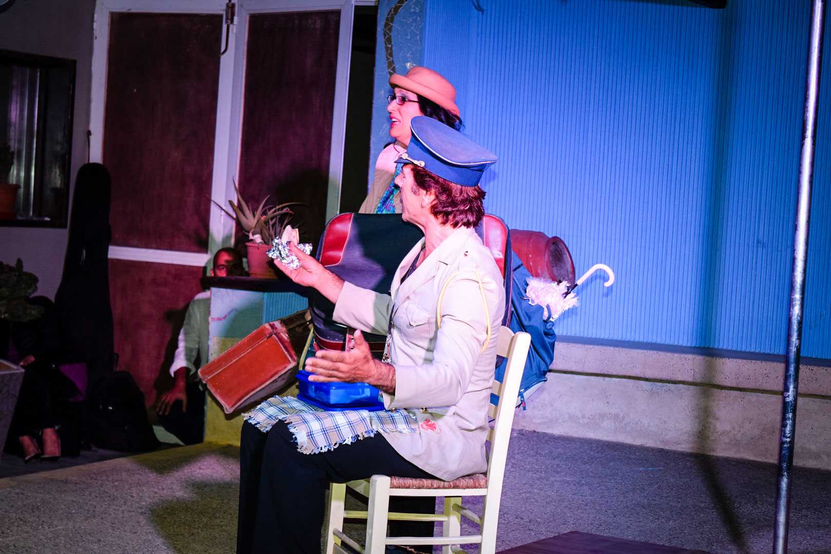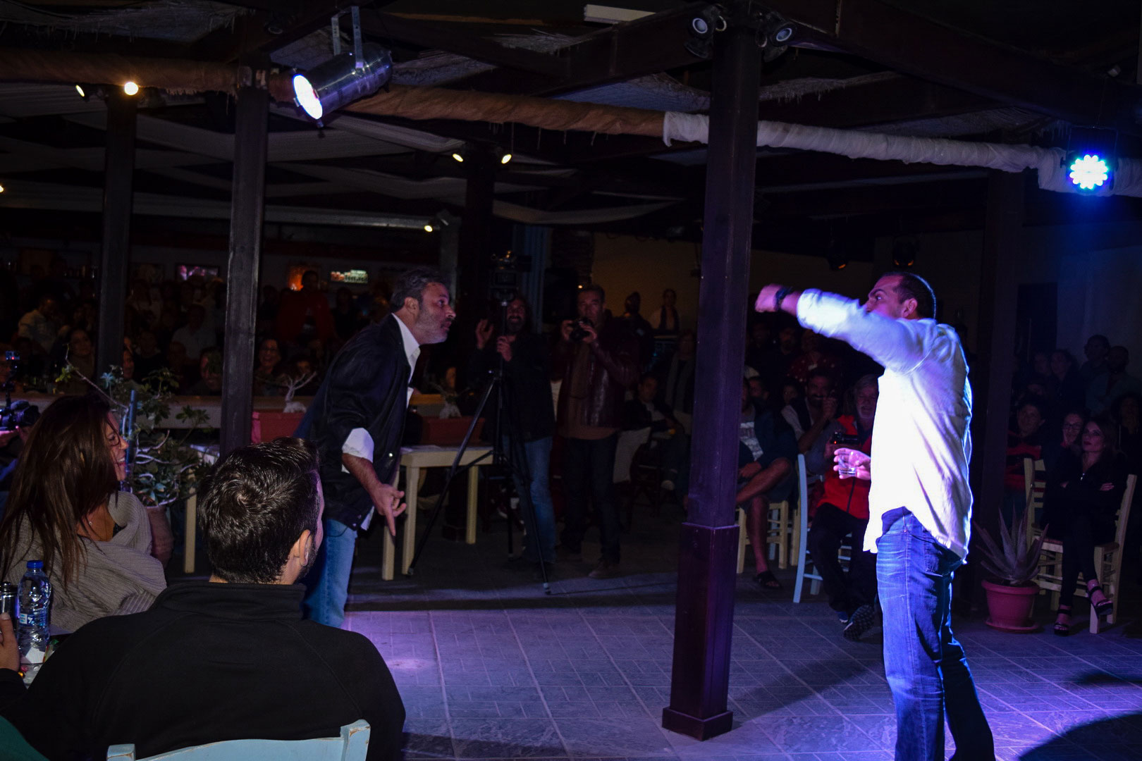 Οι ηθοποιοί της ΘΟΚ παρουσίασαν «Θεατρικά Σφινάκια» – σύντομες σκηνές των Carl Valentin, Γιώργου Σκούρτη, Γιώργου Μανιώτη – καθώς έπιναν το ποτό τους οι θαμώνες και οι επισκέπτες του νησιού.