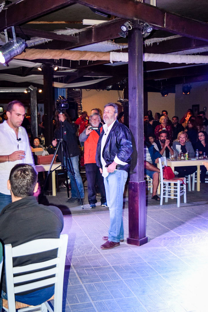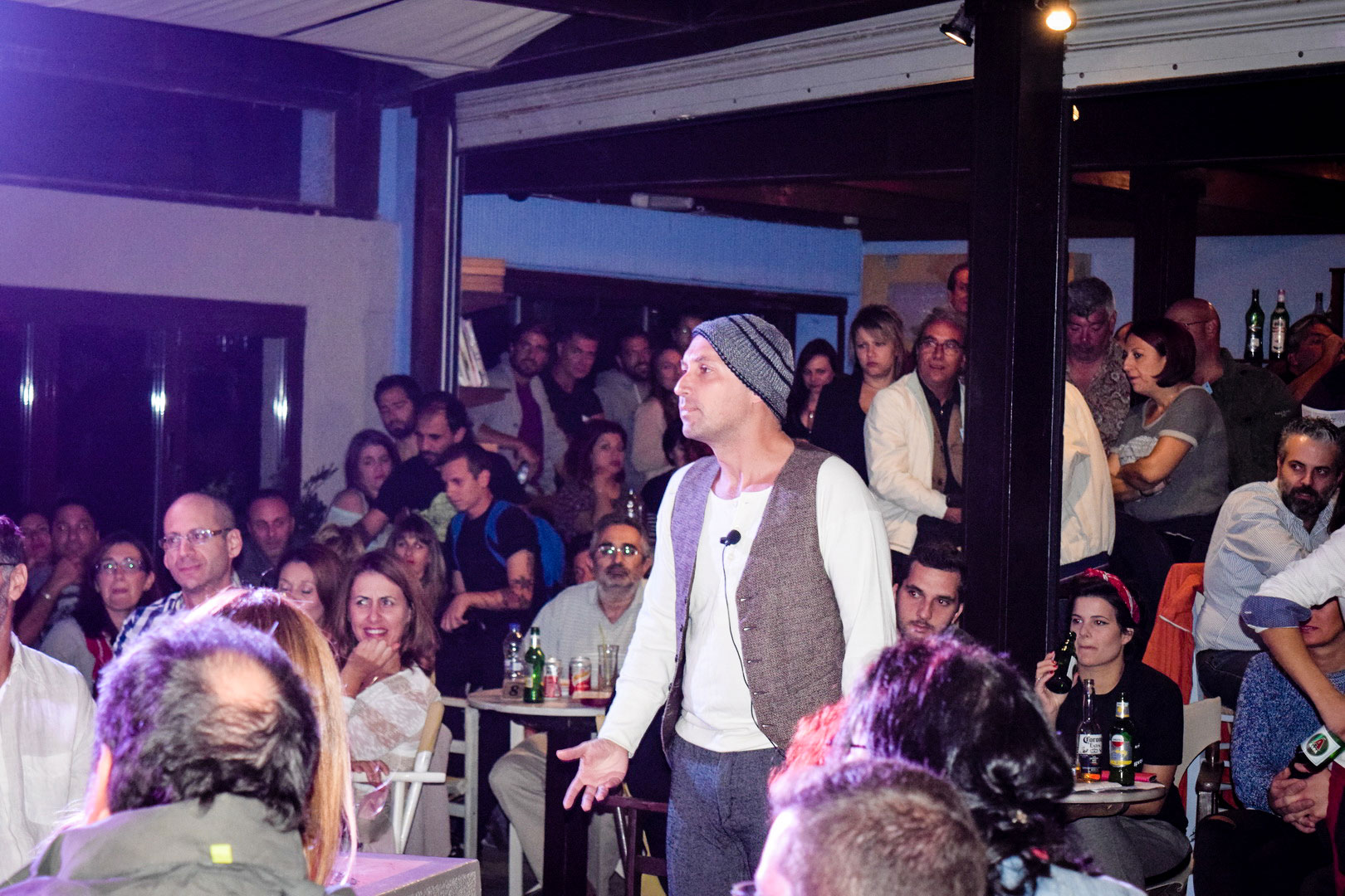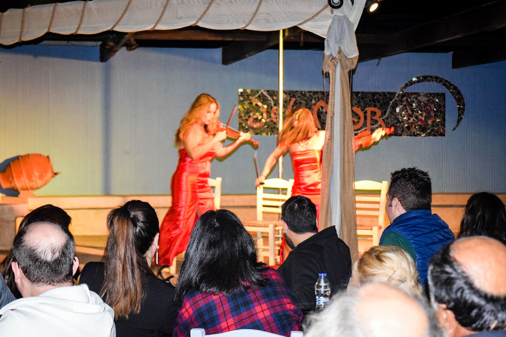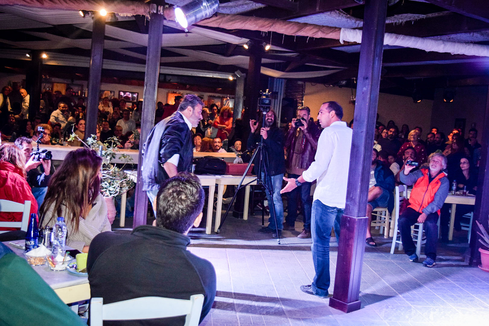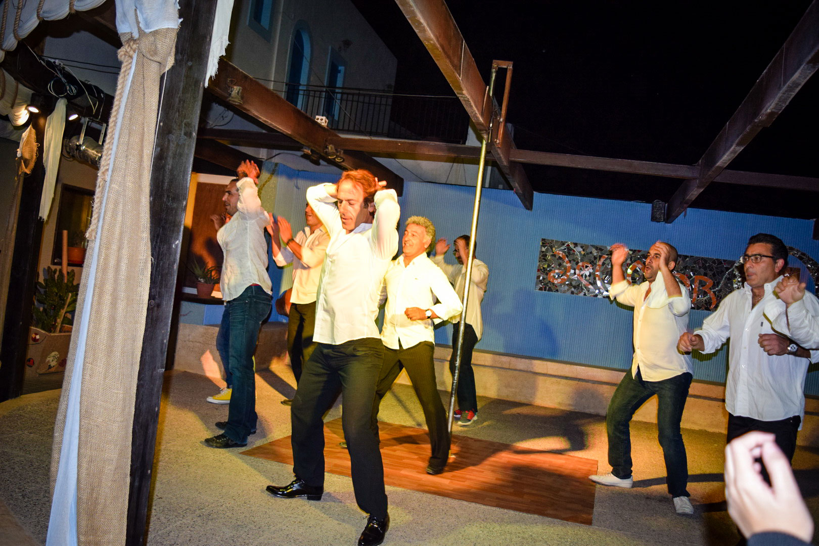 Οι ηθοποιοί της ΘΟΚ παρουσίασαν «Θεατρικά Σφινάκια» – σύντομες σκηνές των Carl Valentin, Γιώργου Σκούρτη, Γιώργου Μανιώτη – καθώς έπιναν το ποτό τους οι θαμώνες και οι επισκέπτες του νησιού.